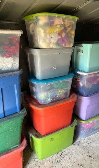 LOT 4221 - Five totes of holiday decor: Easter, Valentines, St Patrick, Halloween, Christmas