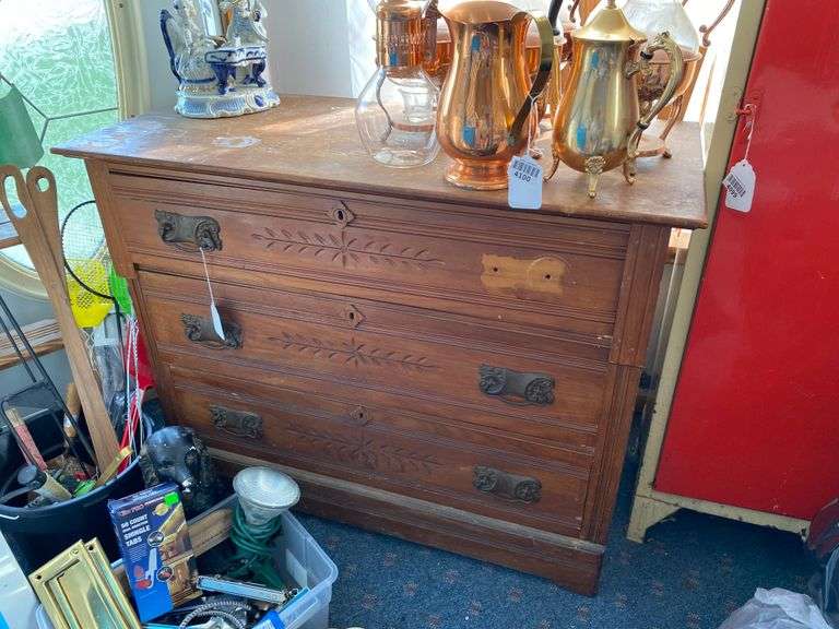 LOT 4101A - Eastlake chest of drawers - note missing pull 39.75x19x31 - no contents