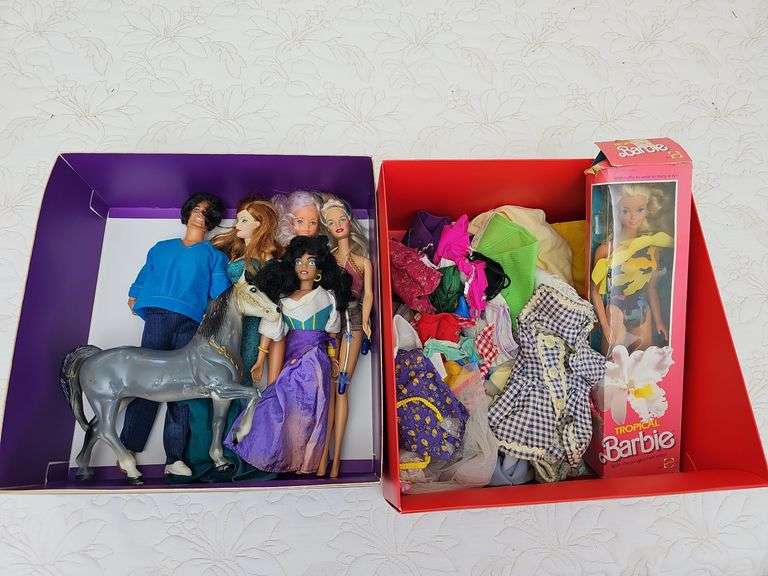 LOT 5846 - Barbie Dolls & misc doll clothing, toy horse