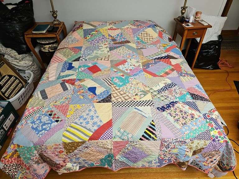 LOT 5861 - Hand Quilted Patch Work Feed Sack Fabrics by Helen Alexander of Pennersville Md