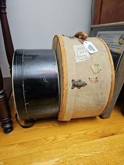 LOT 5859 - Two vtg traveling hatboxes - Paris & other notice the traveling Ocean Liner Stickers