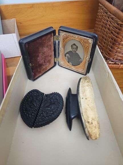 LOT 5884 - Gutta Percha - Child tintype in case, belt buckle, nail buffer