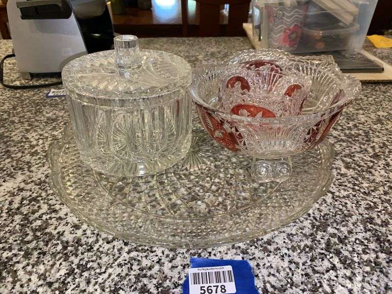 LOT 5678 - Two Byrde crystal bowls, Wexford glass tray, covered jar