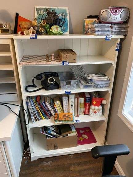 LOT 5392 - White bookcase w/ beadboard backing - no contents 36.5x14.5x53.5 - MUST COME DURING LAST 2 HOURS OF PICKUP FOR THIS ITEM