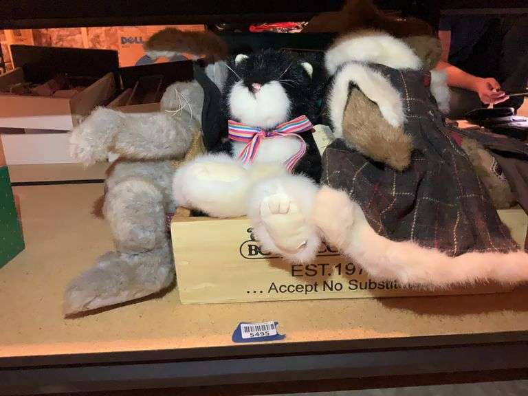 LOT 5495 - Boyds Collection wooden caddy, plush bear, rabbit, and cat