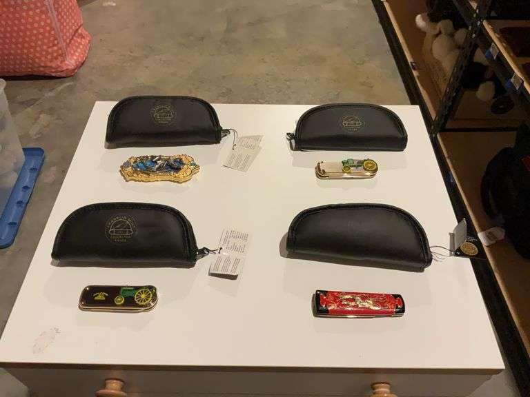 LOT 5510 - Four Franklin Mint collector pocket knives: dragon, John Deere tractor, Phoenix, John Deere tractor