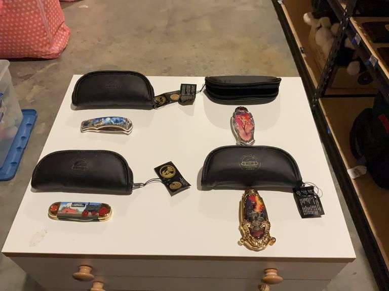 LOT 5511 - Four Franklin Mint collector pocket knives: wolf moon, Farmall tractor, Lord of the Rings, Days of Desire January