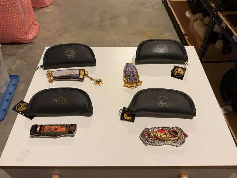 LOT 5514 - Four Franklin Mint collector pocket knives: sailing ships, Vietnam tank, dragon, Frodo Baggins