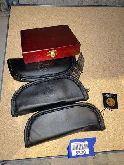 LOT 5520 - United Cutlery pin-up girl knife and three Franklin Mint collector pocket knives: McCormick-Deering tractor, John Deere tractor, Vietnam helicopter