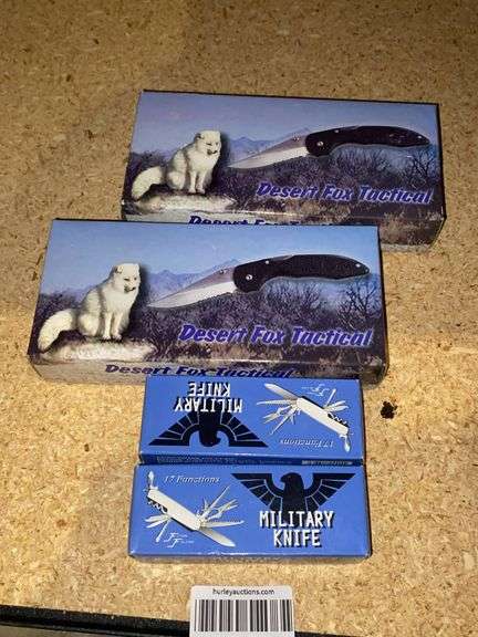 LOT 5543 - Two Desert Fox tactical knives, and two 17-function military knives, all in boxes