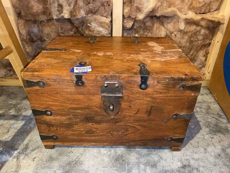 LOT 5552 - Metal bound storage chest w/ iron handles