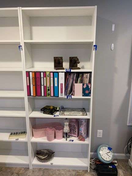 LOT 5566 - White shelf unit - no contents 31.5x11x79.5 - MUST COME DURING LAST 2 HOURS OF PICKUP FOR THIS ITEM
