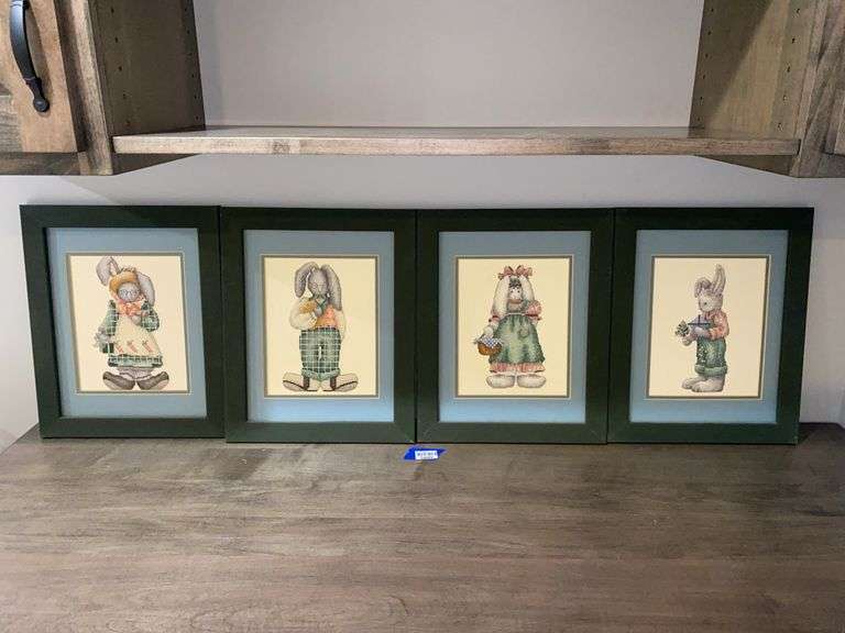 LOT 5605 - Four dressed rabbit needlework pictures, framed