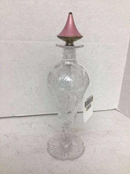 LOT 1831 - Cut Glass Perfume Bottle w/ Enameled Stopper