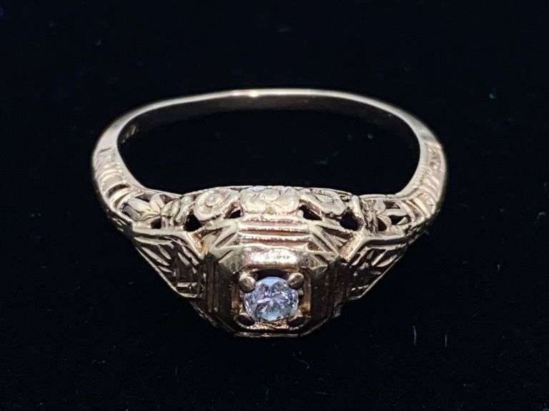 LOT 1078 - 14K gold basket setting ring w/ stone Size 6.5