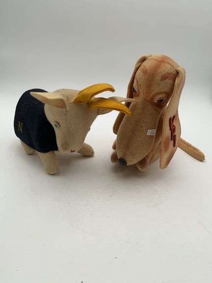 LOT 1257 - Two vintage felt mascots: Navy Bill the goat, and Virginia Polytech Institute dog