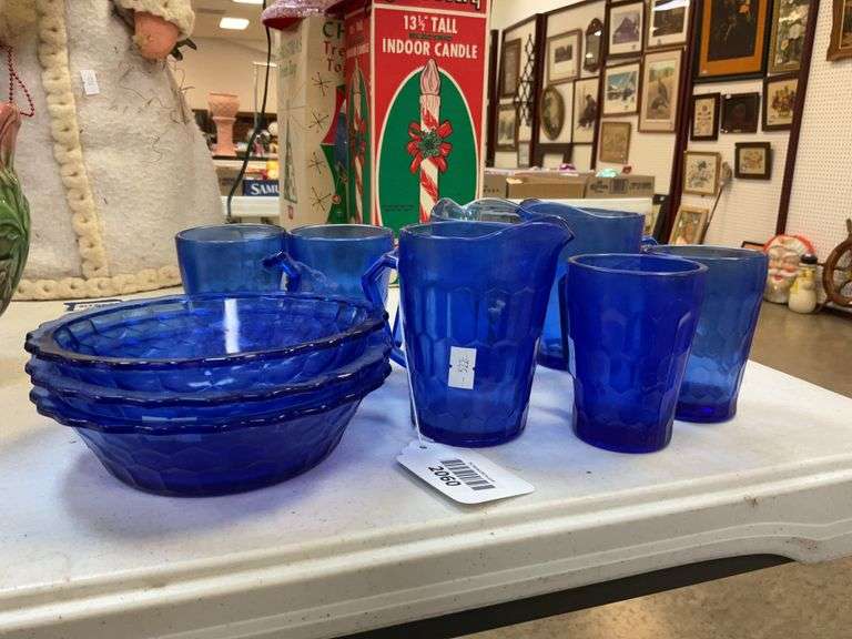 LOT 2060 - Cobalt blue SHIRLEY TEMPLE glassware: mugs, bowls, creamers