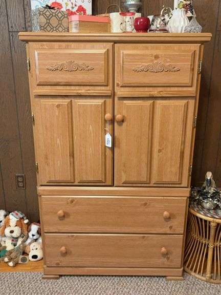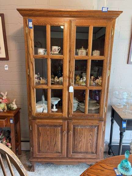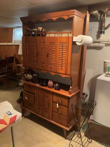 FURNITURE: oak cabinet; round oak tables/chairs; server; curio; Queen Anne sofa & end tables; corner cabinet; Eastlake chest of drawers; stands; wing chair; recliner; display cabinet; desks; stands; glider rocker; bedroom set; cedar chest; swivel chairs; shelf units;