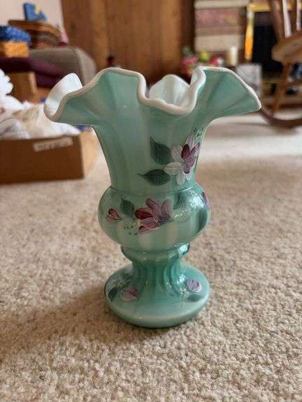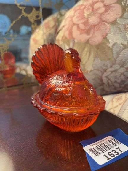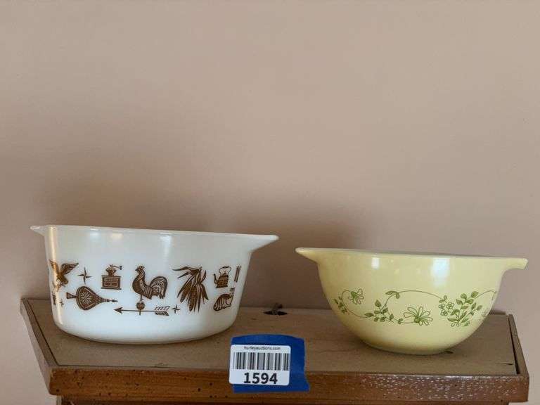 COLLECTIBLES/HOUSEHOLD: vintage Pyrex; Fenton glass; jadeite vase; glass fairy lamps; uranium glass bowl; glass baskets; decorated porcelain; Willow Tree figures; Denim Days figurines; Boyds bears; dolls; wind-up toy dog; glass candy containers; milk bottles; Longaberger baskets; hen cookie jar; Beer advertising signs & lights; crocks;